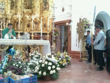Chipiona, 23 de septiembre de 2013.- La Hermandad de Nuestra Señora del Rocío de Chipiona celebró ayer domingo su primera misa en el Rocío como filial de la Hermandad Matriz de Almonte. Por primera vez, por tanto, el Simpecado de Chipiona, estuvo en el interior de la Ermita junto a la Virgen del Rocío, en una eucaristía que fue oficiada a las once de la mañana por el director espiritual de la Hermandad de Puerto Real.