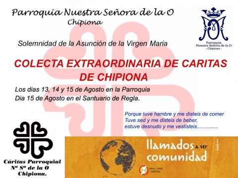 Colecta Extraordinaria de Cáritas Parroquial Chipiona con motivo de la Solemnidad de la Asunción de la Virgen María