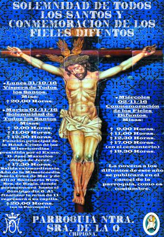 La parroquia hace público hoy el cartel con los solemnes actos de la festividad de Todos los Santos y Conmemoración de los Fieles Difuntos, que comenzarán el 31 de octubre con la oración de vísperas a las ocho de la tarde en la parroquia.