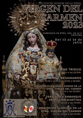 La Hermandad recuerda que los actos tendrán lugar del 12 al 16 de julio. Así, del 12 al 14 se celebra el solmene triduo a las 20:30 horas y el día 15 tendrá lugar el solemne besamanos de 10:00 a 13:30 y de 19:00 a 20:00 horas en la Parroquia Nuestra Señora de la O.